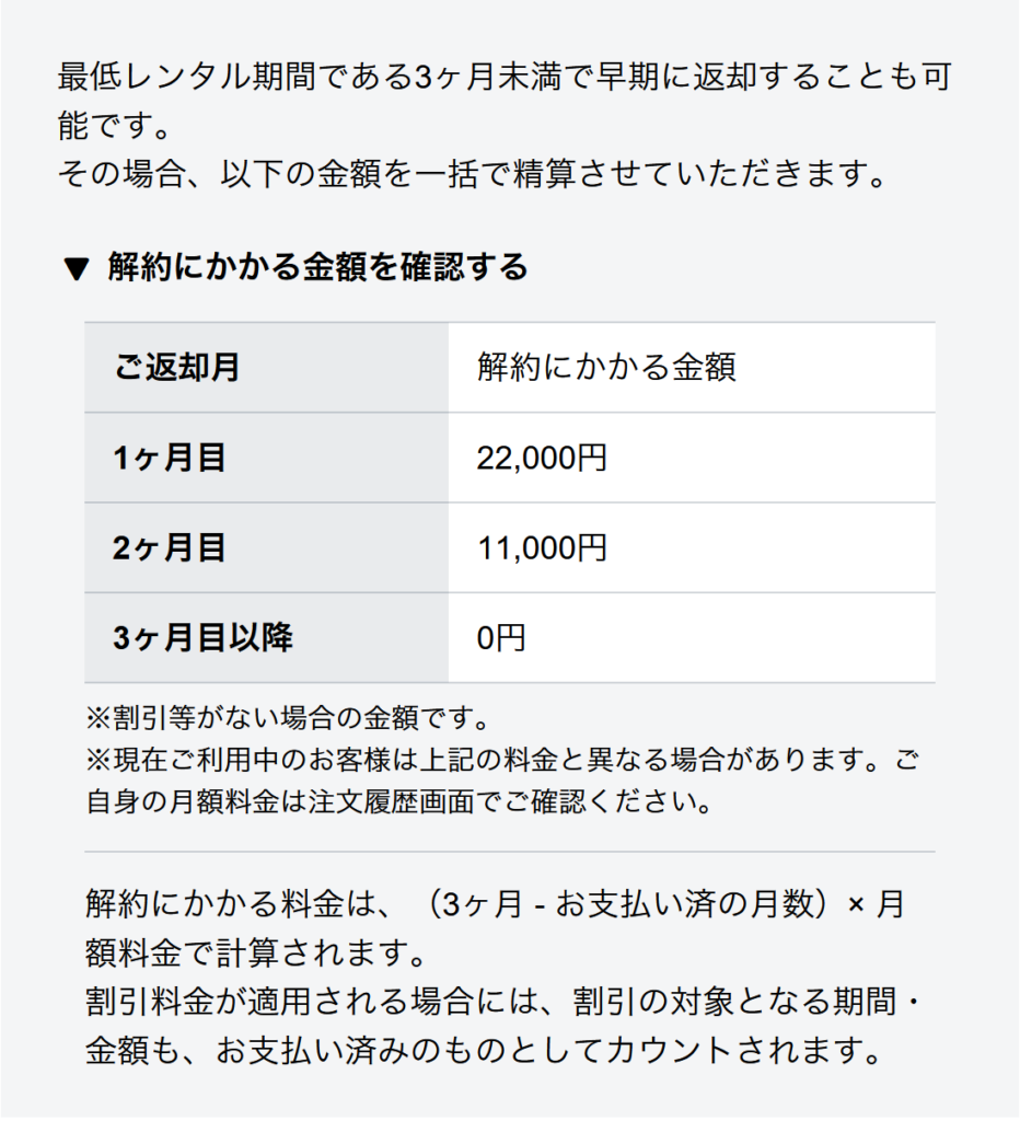 でも、今回レンタルしたビデオカメラの場合、月額プランを選択すると3ヶ月未満で返却すると解約金が発生してしまうのです。